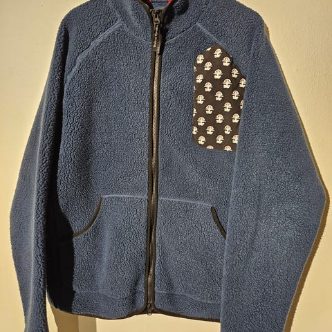 Lee Jakke i denimmateriale, blå farge, størrelse L for herre. Jakken har fleecefôr for ekstra varme og komfort. Den har knappelukking foran og brystlommer med klaff.