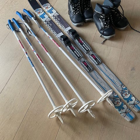 Madshus Smørefri Ski til barn lengde 110 med sko og staver