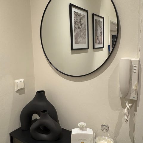 Diameter 65cm, enkelt og lett med ett skruefeste bak.