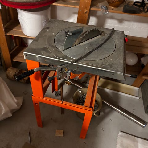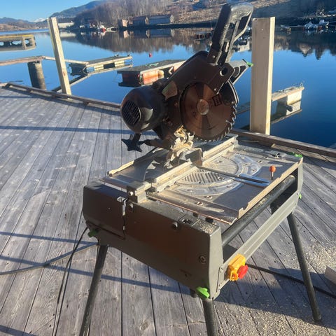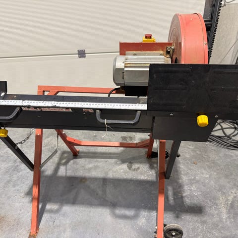 Luna Perfect 824 bygg/kapp/gjær-sag med innmatingsbord selges, motor er 3fas 230V, 0-180gr rotasjon, 45gr tilt/vinkel, litt slitt sagblad. Hentes av kjøper.