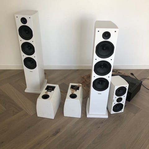 Eldre og spennende modell i fra Bose. Har i tillegg sidemonterte element som spiller ut mot sidevegg for å skape et større lydbilde. Meget underholdende høyttaler som vil gi masse glede:-)