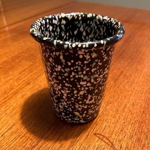 Hay kopper i keramikk i flere farger: rosa, blå og brun. Gode å drikke av og holder godt på varmen!