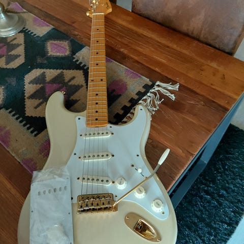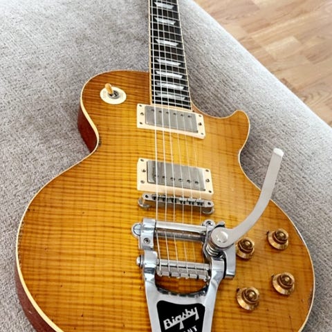 Lakken på baksiden av gitaren er pusset vekk for å få hurtigere "action".