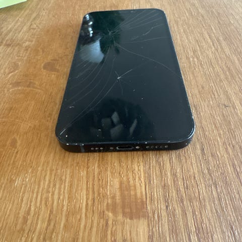 Brukt iPhone, den er knust bak, men lite synlig ettersom den er svart.