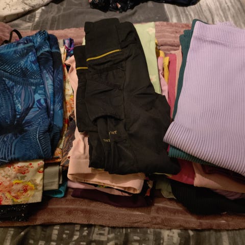 Stoffet helt nederst på venstre ben bak har revnet litt. Ikke hatt betydning for bruken.