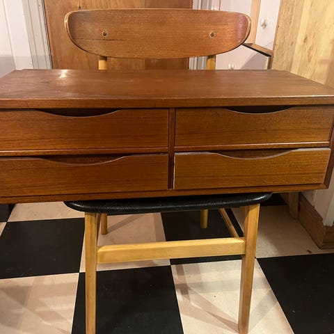 Meget pent skjenk/ bokhylle i teak selger for en rimelig pris. Opprinnelig fra en hylleseksjon som jeg har gjort om til en liten skjenk/ bokhylle. Bena er fra samme tidsrom. Ingen skader og minimalt bruksmerker . Ser bilder. Glasshylle inn i. Passer perfekt i gangen og stue.