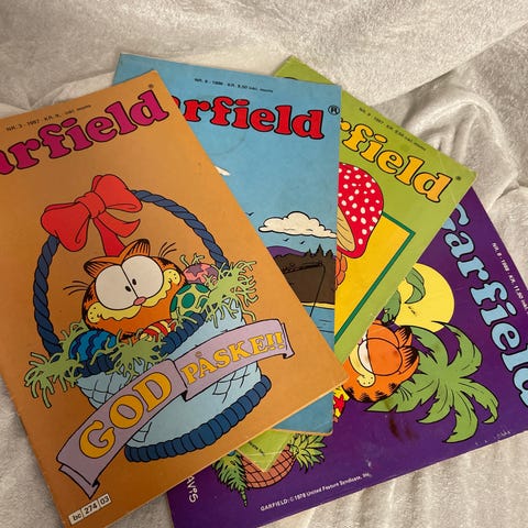 Jim Davis Pusur barnebøker, 10 bøker i serien. Inkluderer titler som Pusur viser klør, Pusur går på dunken, Pusur går i båret, Pusur renser tenna, Pusur skater videre, Pusur legger egg, Pusur tar kaka, Pusur på tur, og Pusur glad i hjul. Bøkene er små og passer for barn. Fra 1980 tallet.