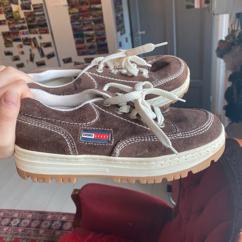 I str 41 1/2 . Jeg bruker normalt 41 i alle sko, og disse passer perfekt.