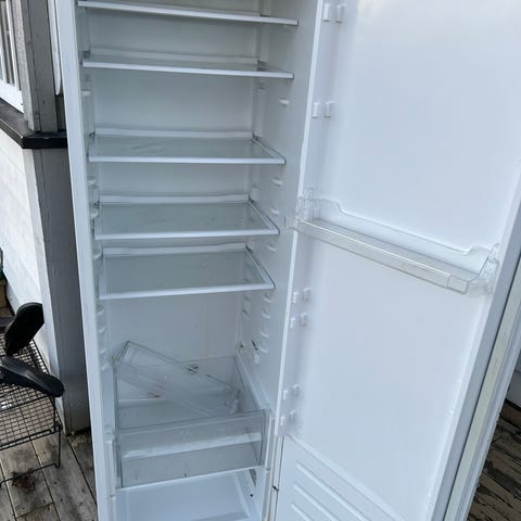Romslig integrert kjøleskap gis bort. Vært veldig fornøyd, og det fungerer, men det iser litt lett.