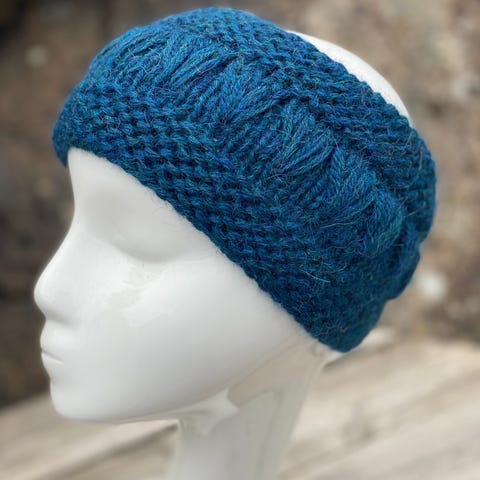 Mykt, behagelig pannebånd, håndstrikket i godt garn som inneholder alpakka og ull.