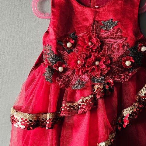 Name it Rød Bomull Jente Kjole i størrelse 104. Laget av bomullsmateriale, egnet for barn. Kjolen har hette og dekorative broderier foran. Kan brukes til hverdags- og fritidsbruk. Passer perfekt som julekjole eller til ei søt nissejente.