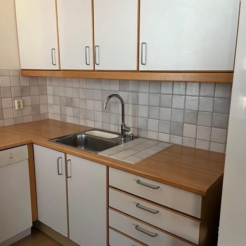 Gir bort et fint kjøkken mot demontering og henting. Nyere oppvaskmaskin (Bosch), komfyr og keramisk platetopp (begge Siemens) følger med. Kjøkkenhette til balansert ventilasjonsanlegg kan også følge med.