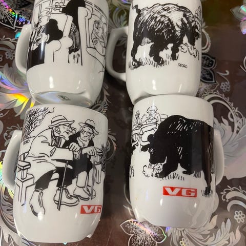 Jeg selger 7 tekopper med skål fra Lucie Kaas (grå), da de ikke blir brukt. De er svært lite brukt og fremstår nye. 475kr pr sett