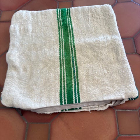 Vakre berberputetrekk i slitesterk agavesilke, nylig kjøpt i Marrakech. Ca. 50 x 50 cm. Hvert putetrekk er unikt, så målene variere noe. Håndvevd kelim, med naturlige fargepigmenter fra planter og mineraler. Stoffene har deretter blitt bleket. Glidelås i siden og ensfarvet bakside.