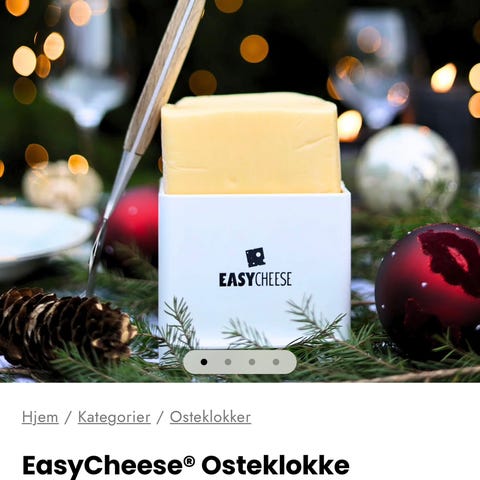 EasyCheese er en smart osteklokk e med bevegelig bunn som presser osten opp etter hvert som den blir mindre. Det gjør det enkelt, raskt og hygienisk å servere pålegg uten klissete plastposer eller at noen må ta direkte på osten.