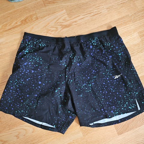 Primark Workout Løpeshorts for herre i størrelse XL. Shortsen har refleks kamuflasjemønster og er designet for løping. Materialet er lett og egnet for trening.