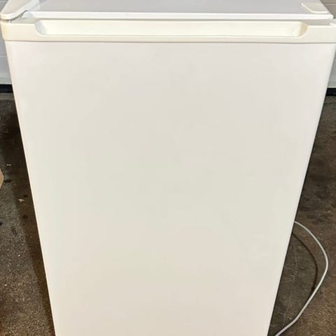 Lite kjøleskap brukt til å oppbevare øl. Fungerer utmerket. Klarer ikke å finne merket. Litt gulnet plast på toppen, ellers fint. Har hjul under. Må hentes på Frogner.