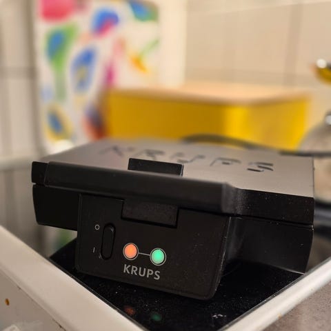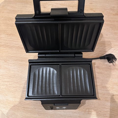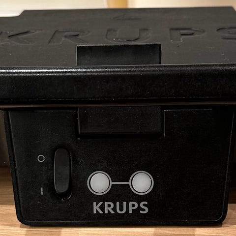 Krups toastjern med non-stick belegg og svart farge. Strømtilkobling via ledning.