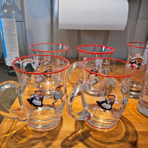 Lite og pent brukt juleservise. 6 små kopper, 6 skåler og 6 asjetter +fløte mugge og sukkerskål (er ikke med på dette bildet)