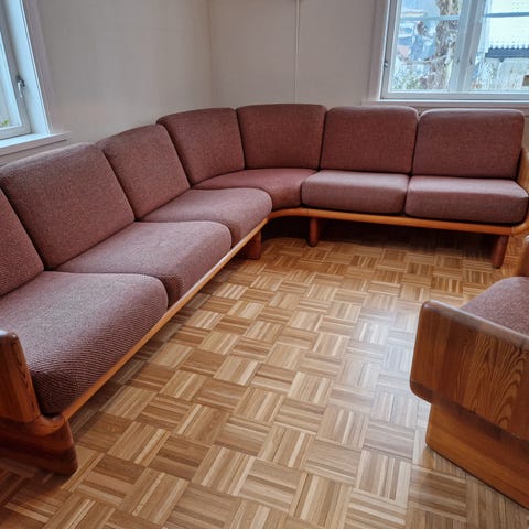 Vurderer å selge denne sofaen fra Birileik-serien. En ikonisk Birileik-sofa i massiv kvistfri furu, designet av Gunleik Svartdal i 1982. Rødstripet setetrekk i ull. Trekkene er avtagbar og kan vaskes. Ingen flekker eller skader. Nyrenset. Pris kan diskuteres.