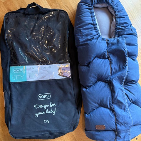 Pent brukt Voksi City dunpose med forlenger og oppbevaringspose.