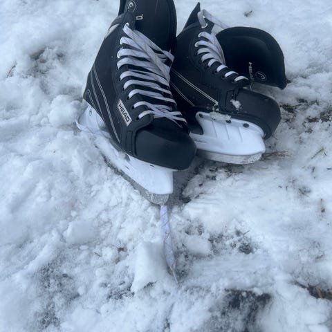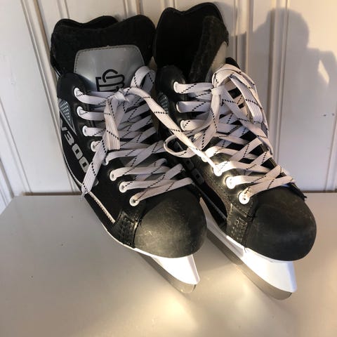 V3000 Ishockeyskøyter i størrelse 37. Skøytene har svart og hvit farge og er designet for ishockey.