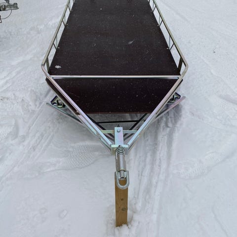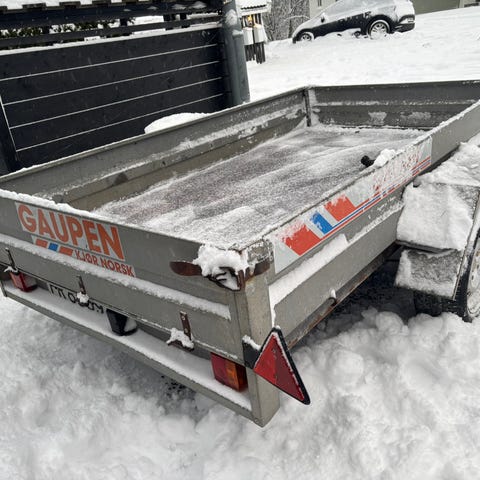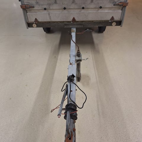 Påløpsbrems er byttet ut med kulekobling, det er derfor ingen brems på hengeren. Går helt fint å bruke som den er, eller det kan monteres påløpsbrems for å få bremser på hengeren.