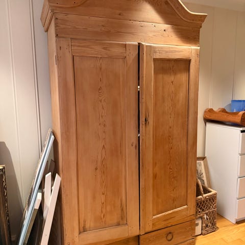 Nydelig antikk lintøyskap selges. Det er laget i furu. Dette kan brukes til det meste og passer fint inn i stua eller i drivhuset.