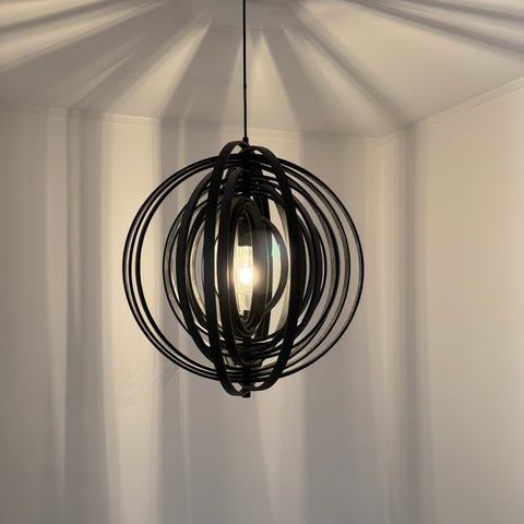 Pent brukt Woody taklampe i svart selges. Kjøpt på Skeidar. Ny pris kr. 1999,-.
