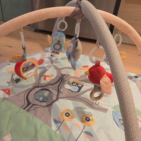 Pent brukt babygym fra Skip Hop. Er ikke noen skader eller mangler. Kun noe bleknet stoff etter vask. Er ferdig vasket og klar for ny bruker.
