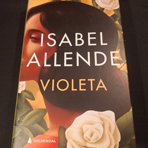 Isabel Allende Violeta er en bok med blå omslag og blomsterdesign. Den inneholder en fortelling om en ekstraordinær kvinne og hennes livshistorie.