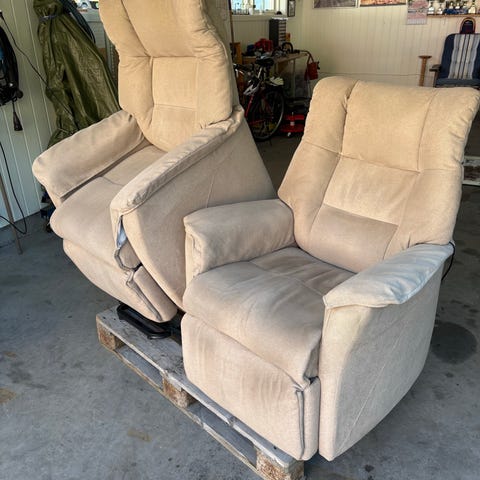 Flott ørelappstol med krakk.