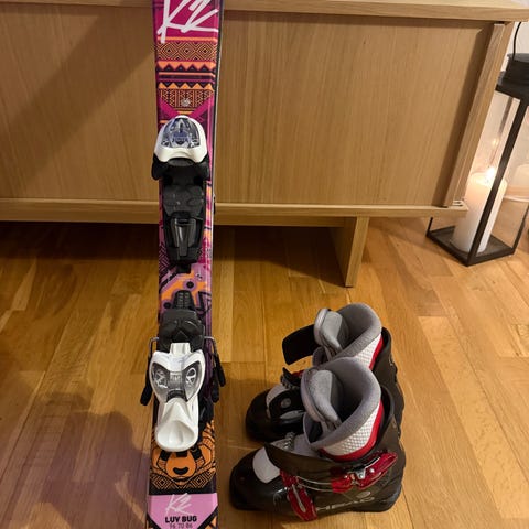 Da er det litt mer å gå på på bindingen. For små for sko i alpintstørrelse 210.