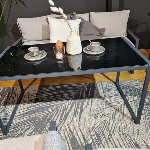 2-seter Easy utesofa med timian-grønne ramme og puter. Nypris 38 998,-