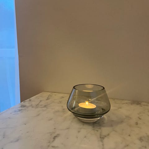 Holmegaard lykt i frostet glass med lærhåndtak