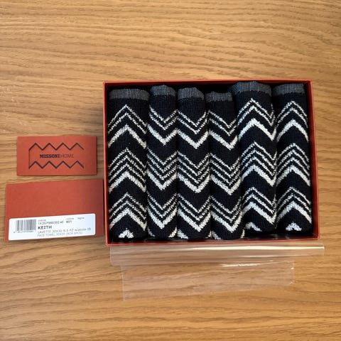 Missoni badematte i turkis. laget av bomull. Badematten har et mønster med sikksakk-design.