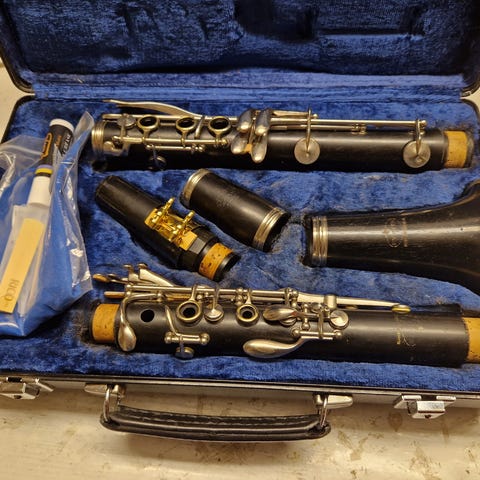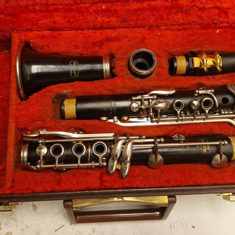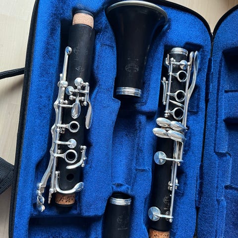 Fulloverhalt Bb klarinett, JEAN MARTIN - Paris - kvalitetsinstrument fra ca. 1960 tallet. Særdeles pent instrument, bærer preg av pent behandlet. Kroppen er laget av grenadilla-tre med nikkelbelagte nøkler. Munnstykket av nyere dato. Trestokken er renset og oljet innvendig og utvendig, tonehull renset, nødvendige endekorke skiftet, mekanikk renset/polert, smurt, kontrollert og finjustert. Alle puter skiftet. Klarinetten er testet og fungerer presist med myk og god klang og intonasjon. Leveres i pent etui med rengjøringsklut og korkfett.