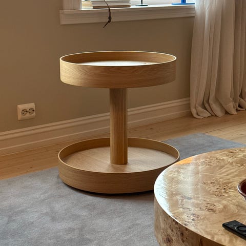 Selger et helt nytt IKEA Stockholm bord i eikefiner med hjul. Se bilder for mål fra IKEA. Nydelig bord - som var litt større enn øyemålet mitt innså i varehuset.
