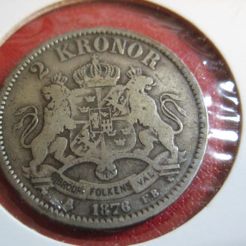2 Kr Sverige 1878 sølv selges kr 300.-+porto
