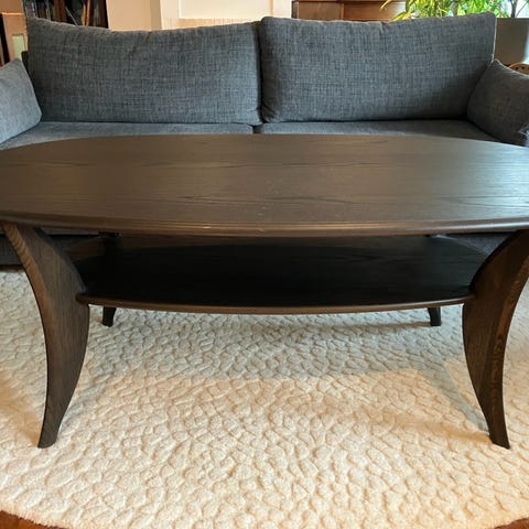 Svært pent brukt salongbord med underfulle fra den populære Pan-serien fra Kleppe Møbelfabrikk. Bordet har ingen synlige bruksmerker. Jeg selger bordet fordi det blir for stort i min nye sofagruppe. Farge valnøtt.