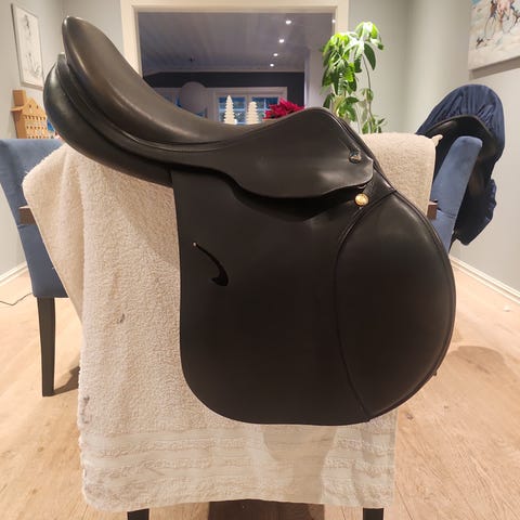 Det er noen bruksmerker med den er godt vedlikeholdt og pusset gjevnlig. Fantastisk god sal å ri i, men dessverre ikke helt optimal for min hest.