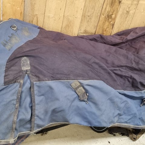 Horseware Rhino Wug - 200 gr - str. 145 Meget pent dekken, som er lite brukt, fremstår som nytt, Kun et lite bitemerke på rompe, noen bittesmå hull innvendig i for ved frontlukkning. Begge enkle å reparere.