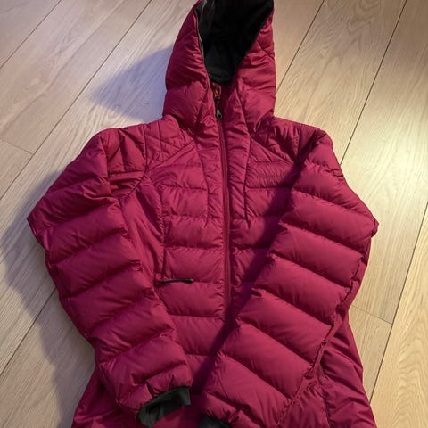 Bergans dunjakke i rosa farge, størrelse XS for dame. Jakken er veldig lite brukt, ingen synlig slitasje. Jakken er laget med dunfyll som isolasjon og har hette. Egnet som yttertøy for utendørs bruk.
