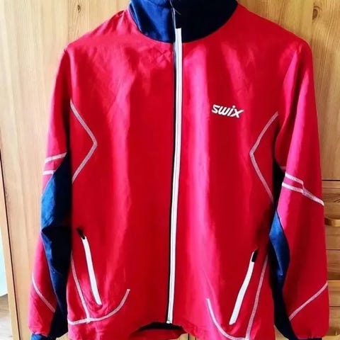 F710. str. 164/S Langrennsjakke/skijakke SWIX m netting og glidelåslommer (rød/hvit/sort) SWIX. Fin stand, kun bittelitt nupper på overarm. 200kr