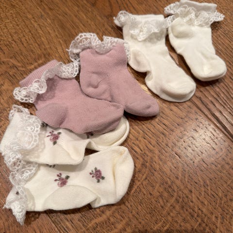 9 par sokker fra Newbie i str. 19-22. Alle sokkene er fint brukt og er ikke slitt eller har merker/hull. Det er også et par sokker fra Gobabygo i str. 6-12 mnd i bomull.
