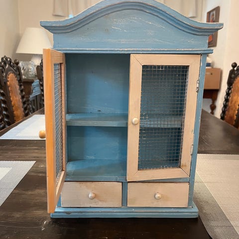 Sjarmerende medisinsk i stilen Shabby Chic, kjøpt slik du ser det. Passer fint på hytta eller i hjem med fokus på «gammeldags» hygge.