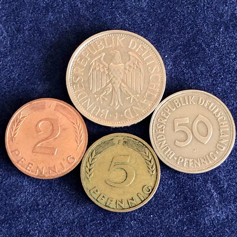 24 stk tyske mynter selges samlet for halv pris - kr 600,- + forsendelse.