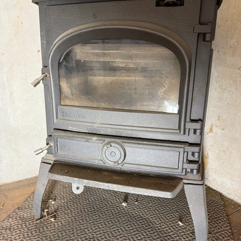 Vedovn i støpejern i svart farge. Kompakt design med glassdør for innsyn til flammene. Egnet for oppvarming av mindre rom. Har avtagbar askeskuff og topp for matlaging eller oppvarming av kjele.
