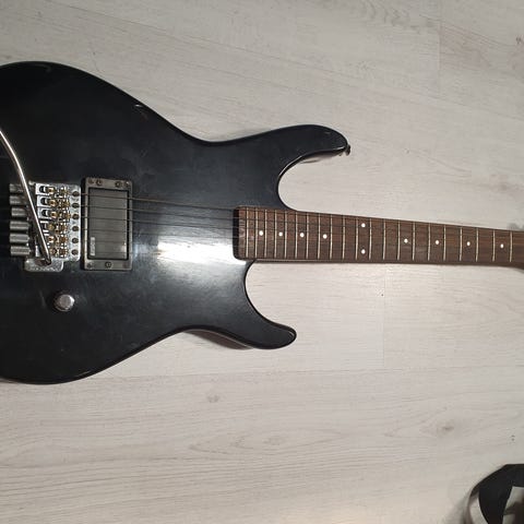 Gitaren er da 25 år gammel, men ser meget flott ut. Bånd er fine. Cosmo black hardware er overraskende fint etter så mange år. (på andre gitarer jeg har blir cosmo black til ren chrome etter noen år).