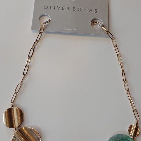 - gullfargede øredobber med brune og lysegrønne glassdetaljer fra Mango (nypris 199)